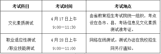 考试招生实行“文化素质测试+职业技能测试(或职业适应性测试)”的评价方式。