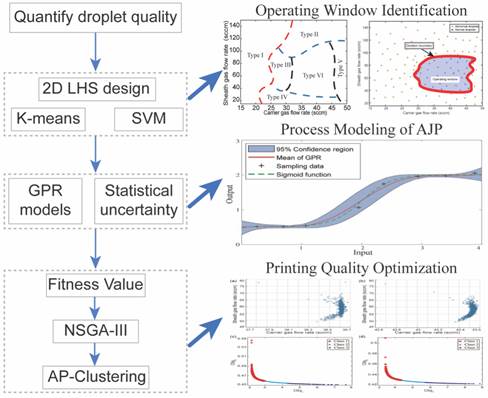 论文提出了一个结合经典机器学习方法的系统优化框架,首次系统性地改善气溶胶3D打印沉积液滴形态的可控性,并揭示其与各种气溶胶喷射印刷线特性的相关性,这将有助于从根本上优化气溶胶3D打印技术的整体打印质量。