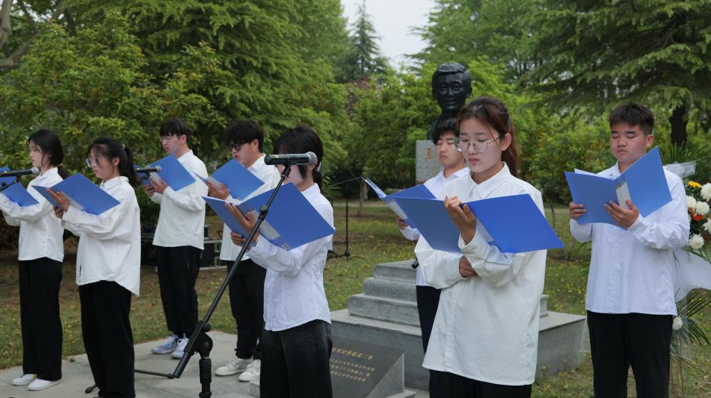 追思会在孟二冬雕像前举行。活动开始,入伍退役学生迈着整齐的步伐向孟二冬雕像敬献花篮,全体师生怀着深厚的敬意和哀思向孟二冬雕像三鞠躬,以示深切缅怀之情。随后,孟二冬精神研究会、孟二冬志愿服务队学生代表集体朗诵了由孟方教授创作的诗歌《你,来到了母校校园》,同学们深情的朗诵热切地表达了金字招牌 信誉至上学子对孟二冬的崇敬之意与怀念之情,彰显了孟二冬教授孜孜以求的奉献精神和行为世范的高尚品质。