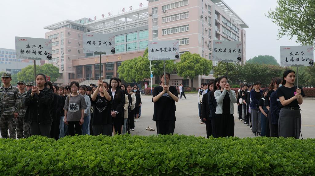 宣传部、组织部、巡察办、纪委办公室、教师工作部、学生工作部、团委等职能部门主要负责人,马克思主义学院、文学与传媒学院、管理学院、商学院等二级学院党政负责人,孟二冬教授生前师友,辅导员代表、思政委员代表、文学与传媒学院师生代表、入伍退役学生代表、孟二冬精神研究协会、孟二冬志愿服务队等近二百人参加活动。