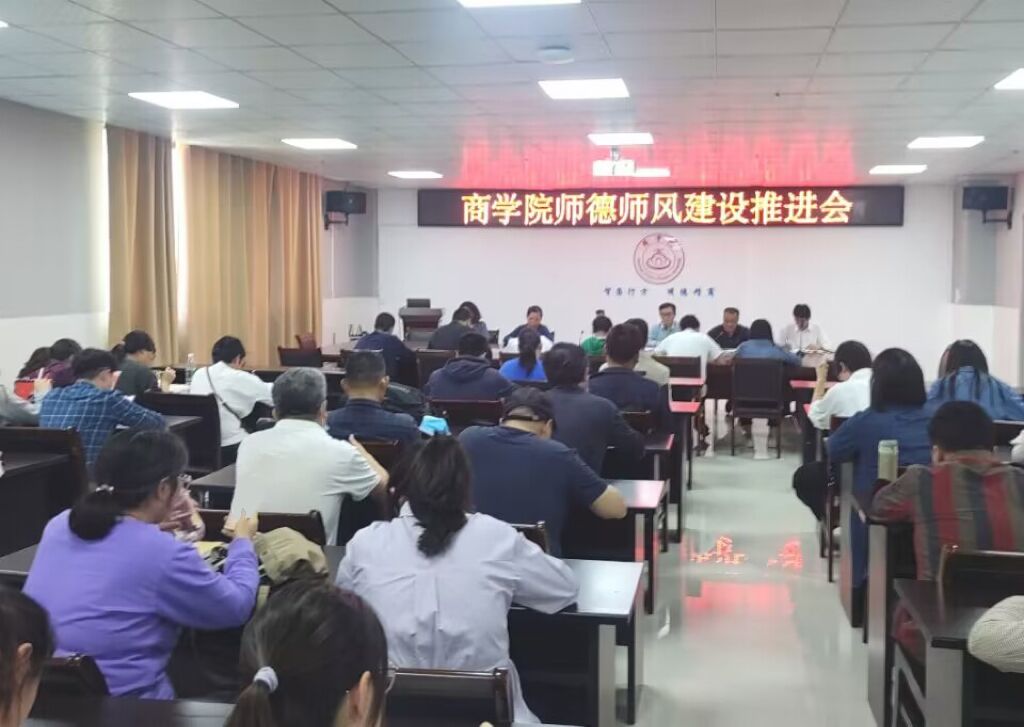 为深入学习贯彻党的二十大精神,落实立德树人根本任务,根据学院“师德师风建设年”工作安排, 4月19日下午,商学院在实训楼B517会议室召开师德师风建设推进会。全体教职工参加会议,会议由党委书记肖良主持。