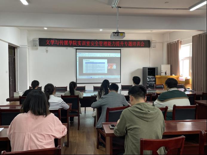 为贯彻落实《教育部关于加强高校实验室安全工作的通知》文件要求,切实增强实训管理人员安全责任意识,提升实训安全管理水平,文学与传媒学院于4月19日组织开展实训室安全管理能力提升专题培训会,实训室安全管理人员及使用实训室教师参加了此次培训。