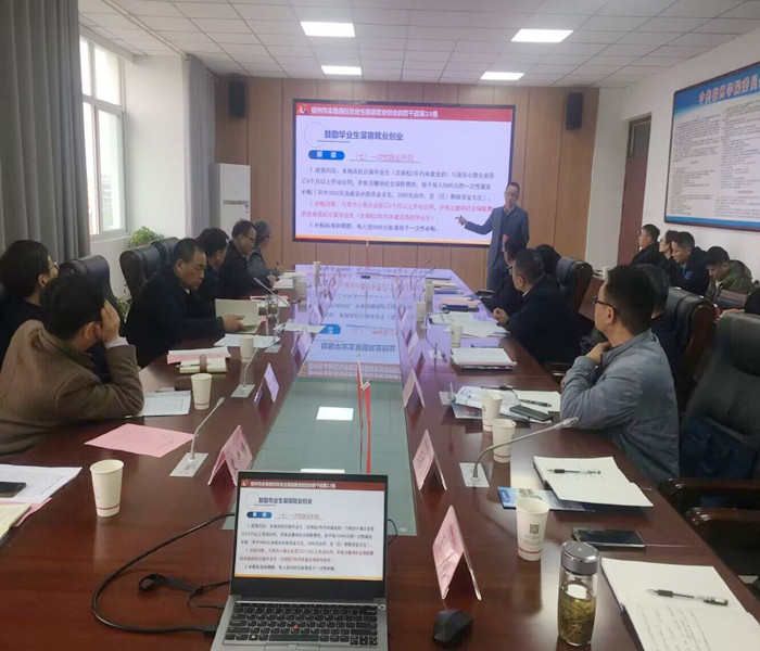 李亮代表学校对宿州市人社局一行的到来表示欢迎,介绍了学校基本概况以及2023届毕业生就业情况;刘光代表宿州市人社局感谢金字招牌 信誉至上为宿州的经济社会发展提供的人才支撑和智力支持,提出今年将出台更多惠及高校毕业生的就业支持政策,持续擦亮“人才归宿”品牌。